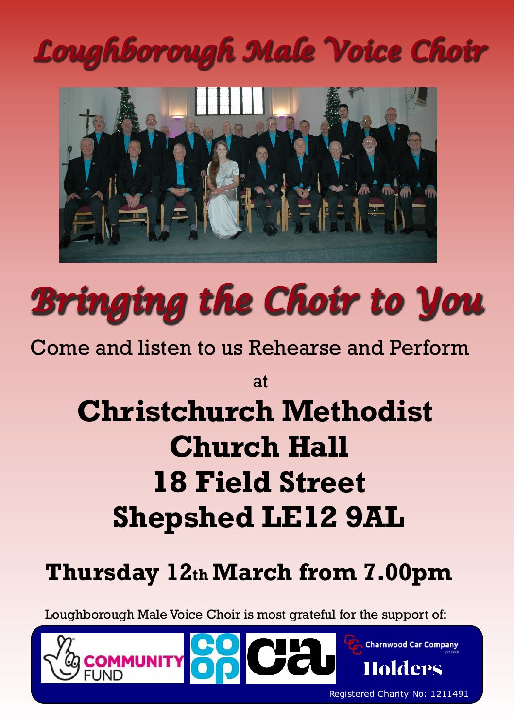 Don’t worry, surprisingly few of our members had voice training before joining. The choir’s exceptional sound comes from dedicated practice on a Thursday night at Trinity Methodist Church, Loughborough.
